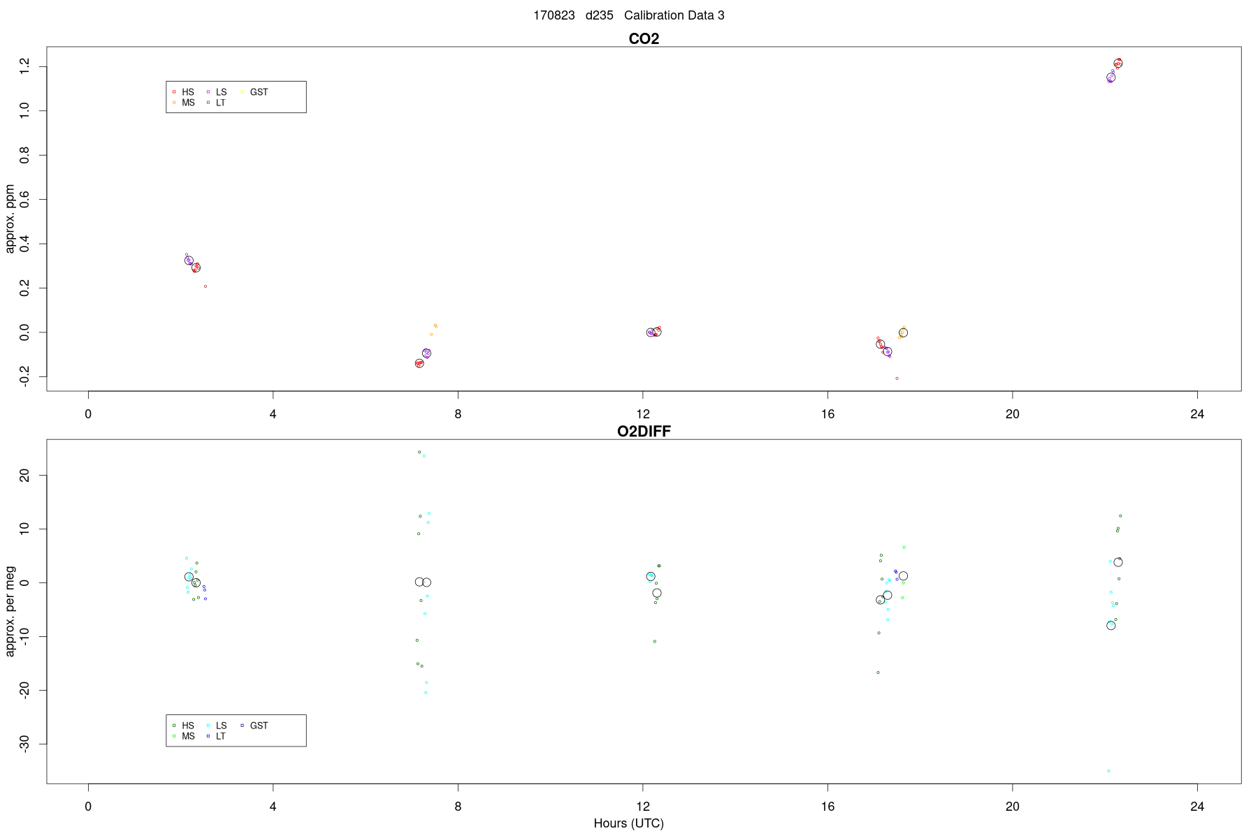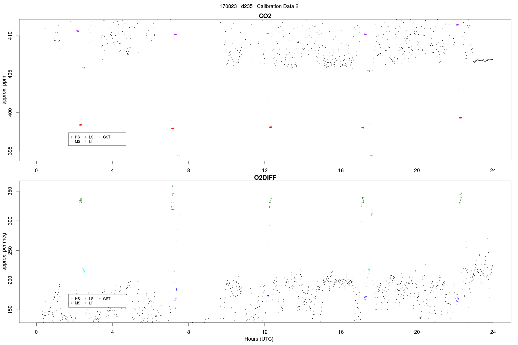 MS: CA07671, CO2 (GMD) = 393.3, O2 (SIO) = -526.1