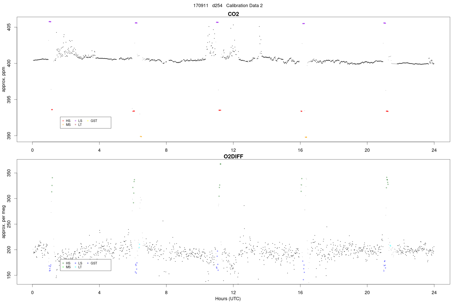 MS: CA07671, CO2 (GMD) = 393.3, O2 (SIO) = -526.1