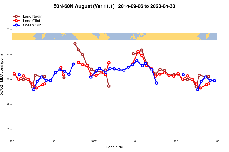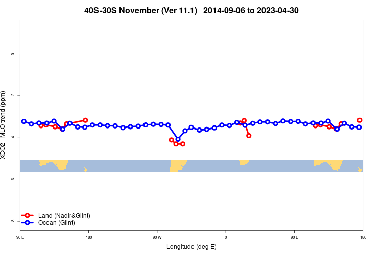 OCO2 LONGITUDINAL GRADIENTS, VERSION: 11.1