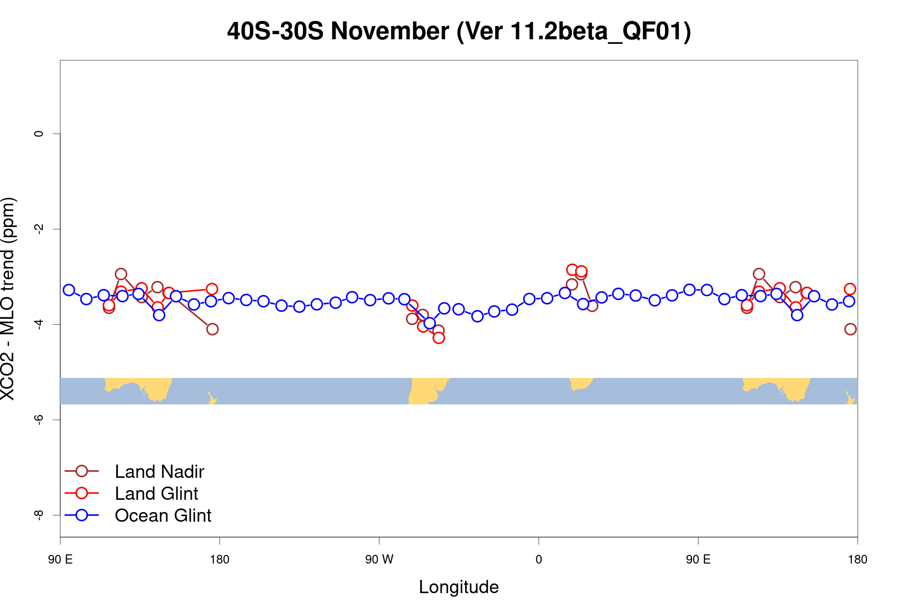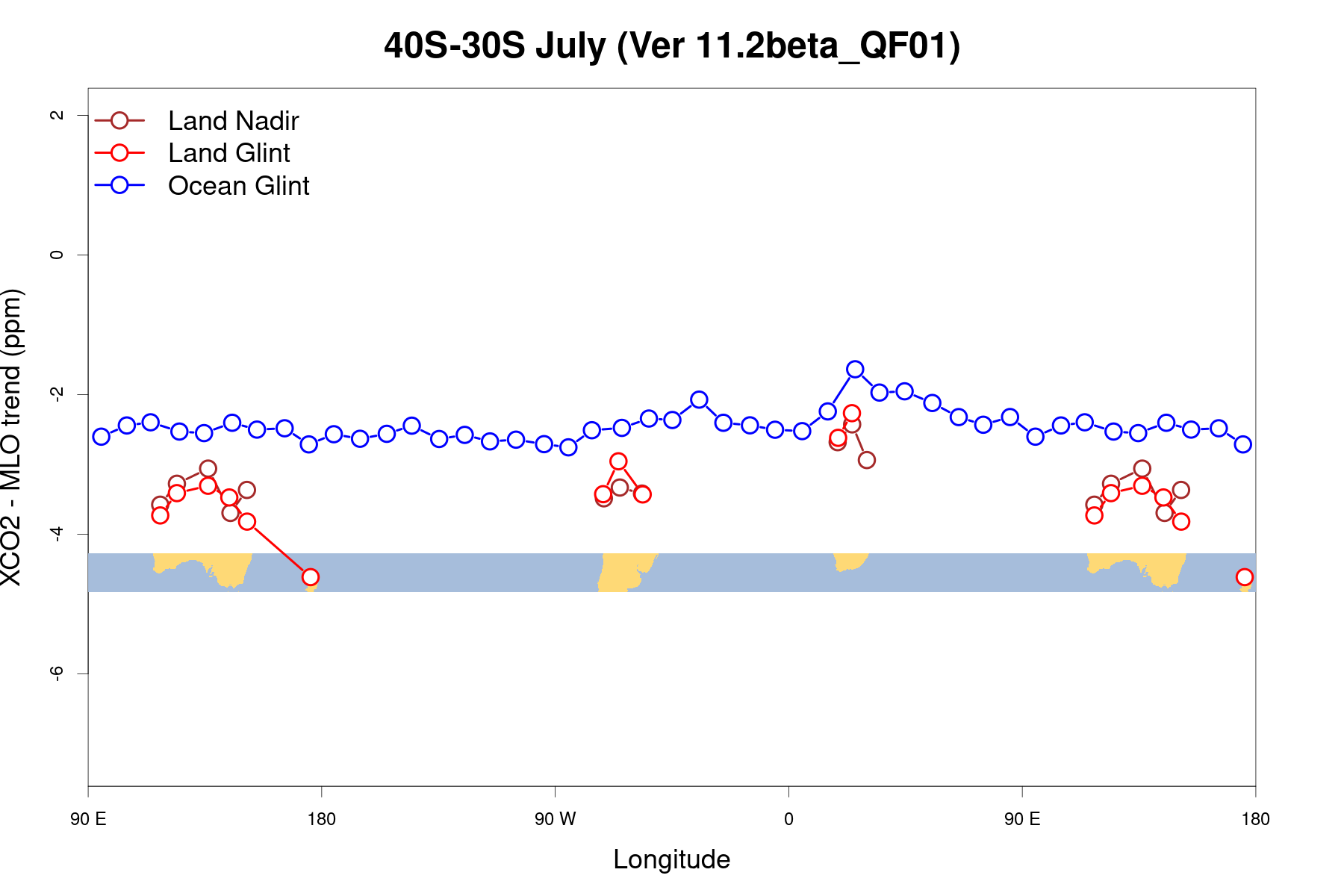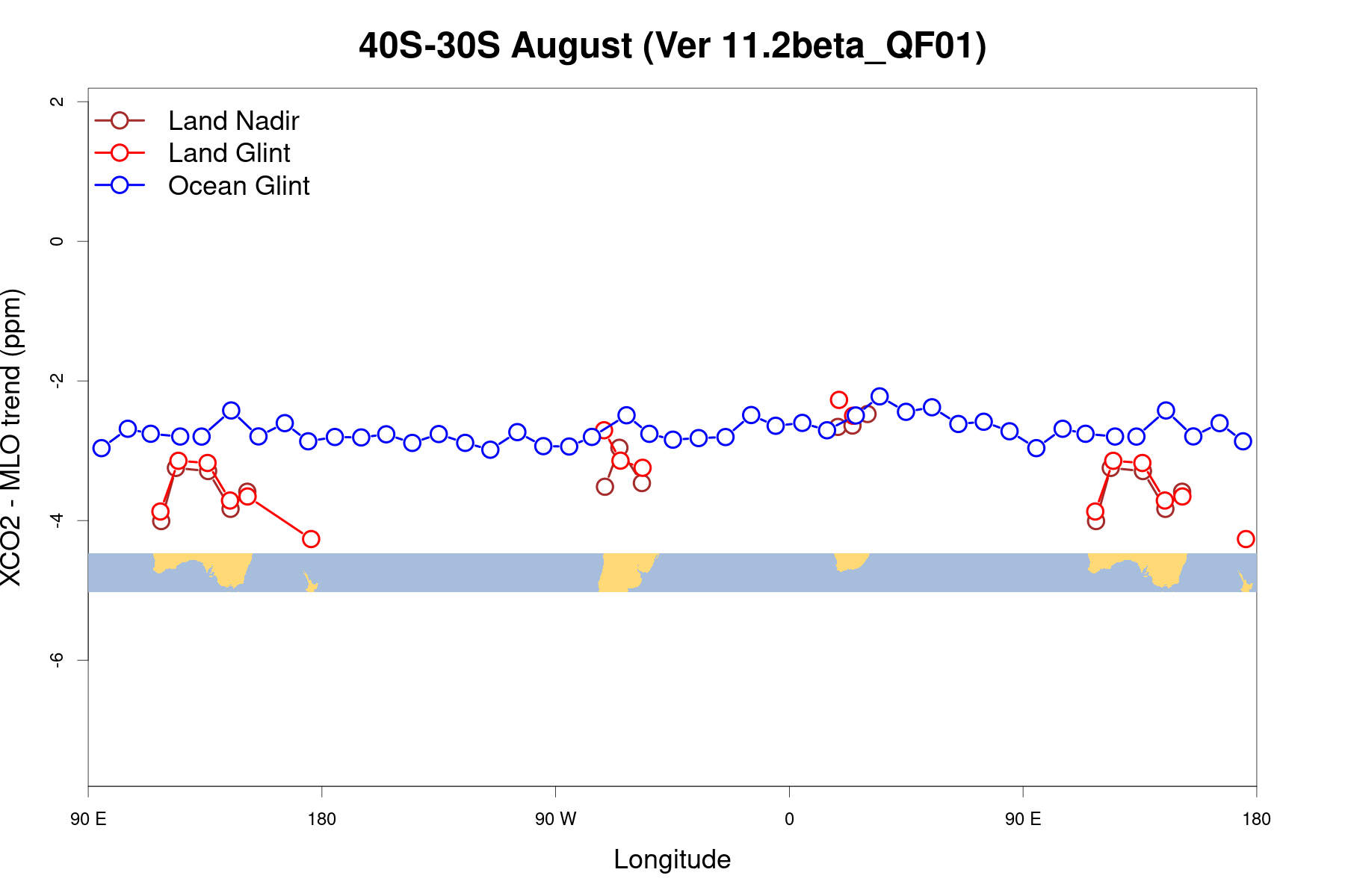 OCO2 LONGITUDINAL GRADIENTS, VERSION: 11.2beta_QF01