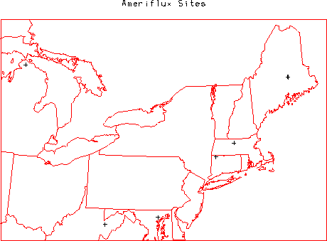 long-term measurements of CO2, water and energy fluxes throughout the US (3 in Maine).